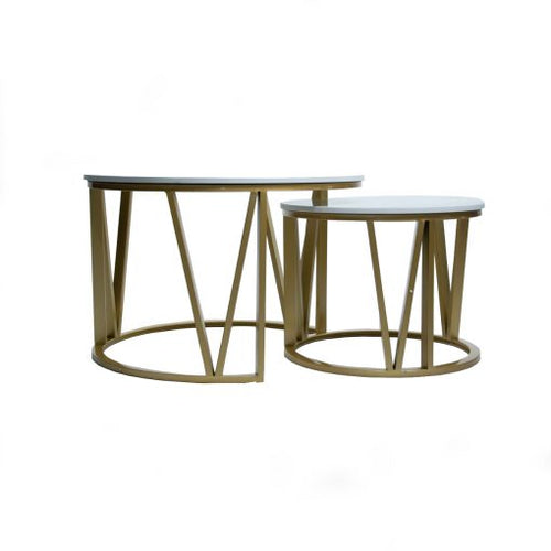 Set mesas de centro cubierta de marmolina y patas de fierro doradas